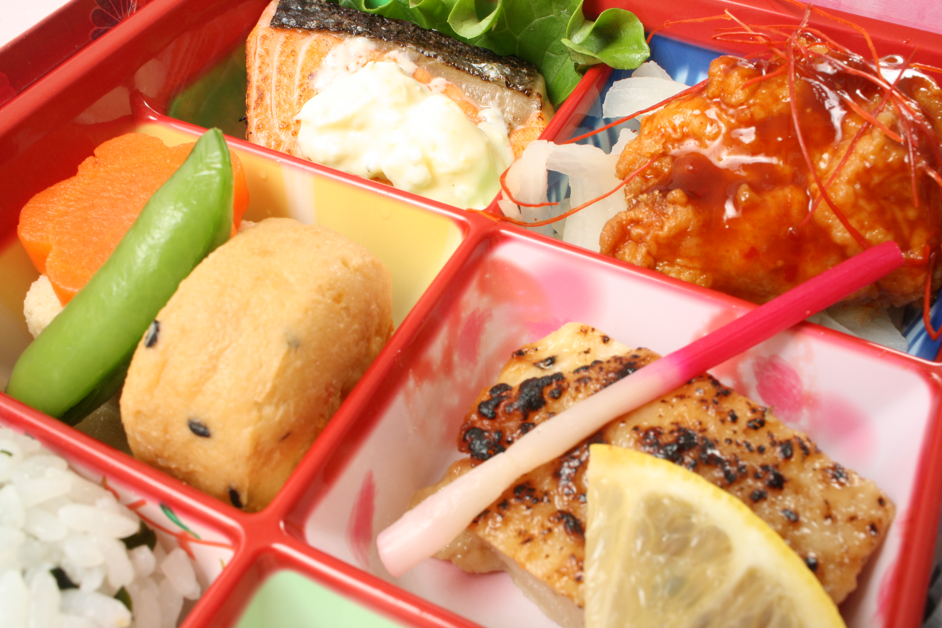 大阪市内、大阪府内、兵庫県の一部の地域にを中心にサービス弁当を宅配します。その他におかずが豊富な月替わりのお得なサービス弁当や、リーズナブルなお手軽シリーズ、ハンバーグ、揚げ物など人気のおかずがメインの定番シリーズ、ボリューム満点のデラックスシリーズなど幅広いラインナップをそろえております。イベント、ロケ、会社のセミナー、会議、パーティーまたは学校行事や友人同士の行楽など、色んなシーンでぜひご利用ください。 またWeb会員の方にはお茶のペットボトルをお弁当1個につきプレゼント。定期的にメールマガジンで会員限定プレゼント企画やお得な情報も配信しております。ぜひご購入の際には本サイトよりWeb会員へご登録ください。